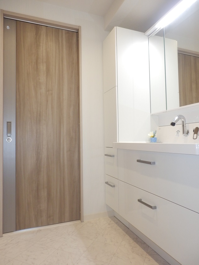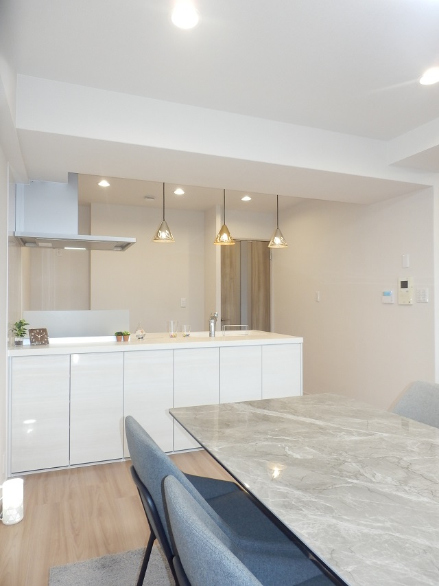 マンションの水まわり設備、給排水管の配管設備、フローリングや建具などの新建材、クロスなどの内装材のすべてを新しくするデザインリフォーム(フルリノベーション)です。
