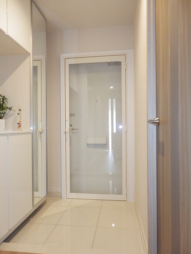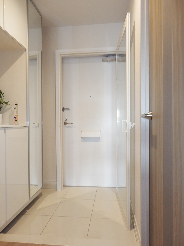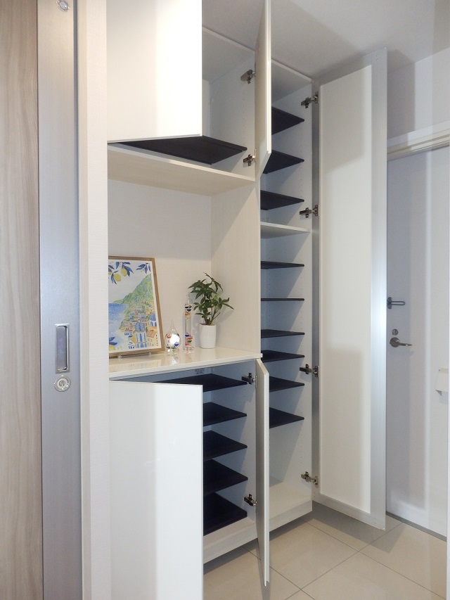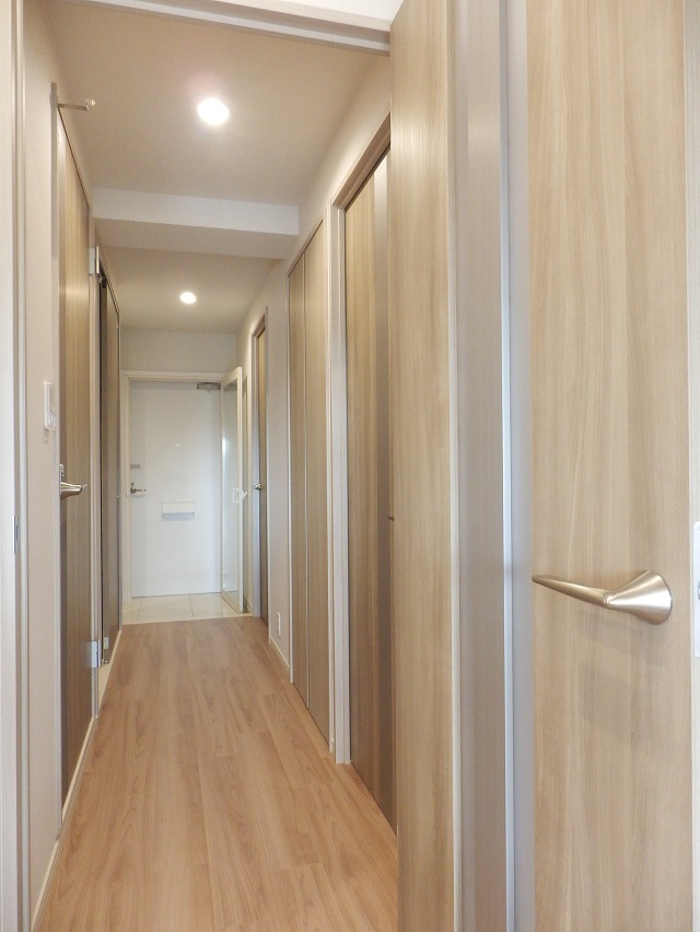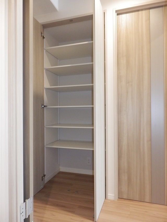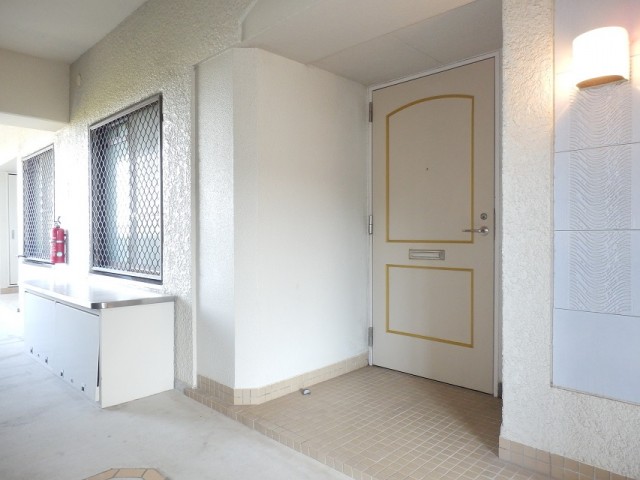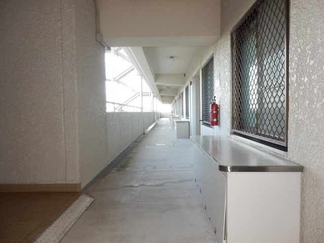 玄関ドア前の共用廊下に専用倉庫(約1㎡)があり、専有部分として使う事ができます。