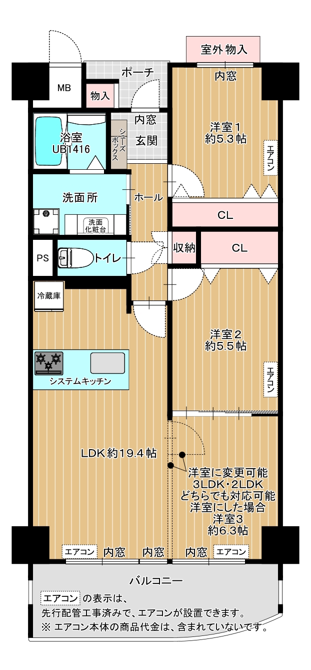 間取り 3LDK(3LDK・2LDKどちらでも対応できます)