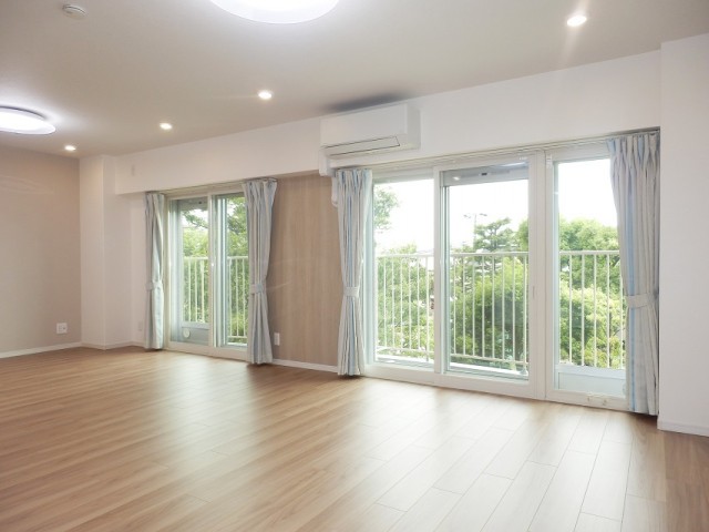南面のバルコニーの裏には芝生が拡がり、芝生の向こうは公園になっているため、今後、南面に建物が建つ事は無いかと思われます。