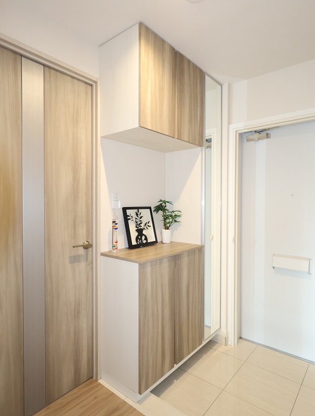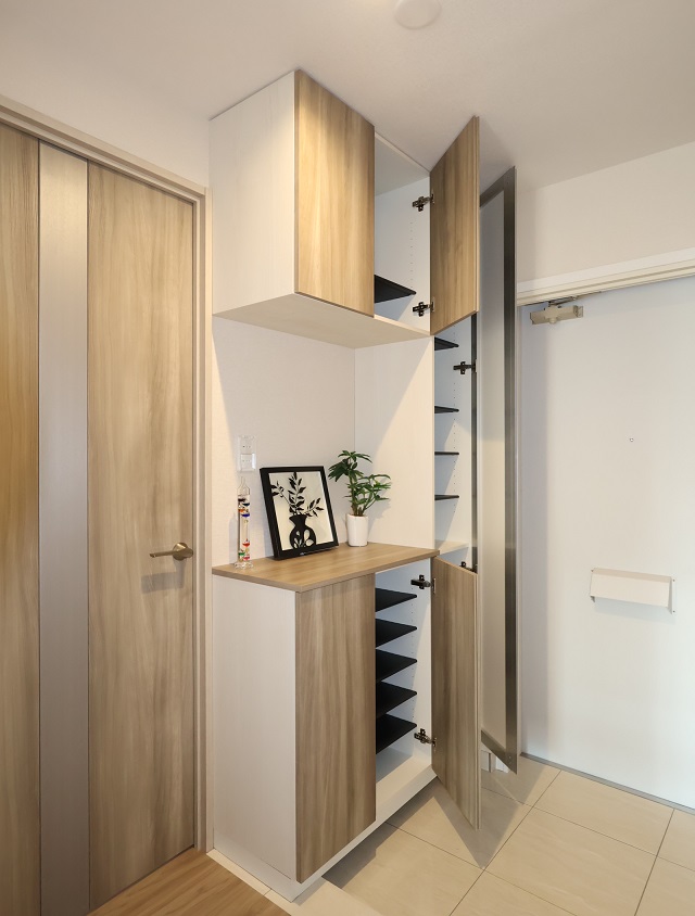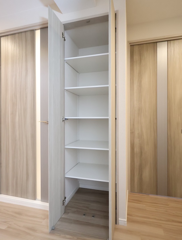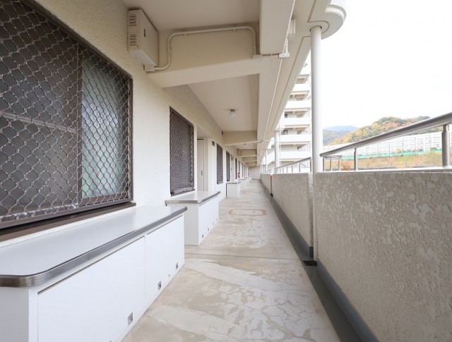 玄関ドア前の共用廊下に専用倉庫(約1㎡)があり、専有部分として使う事ができます。