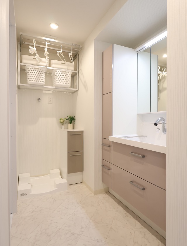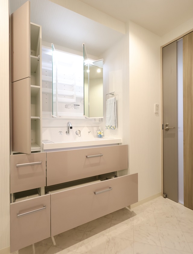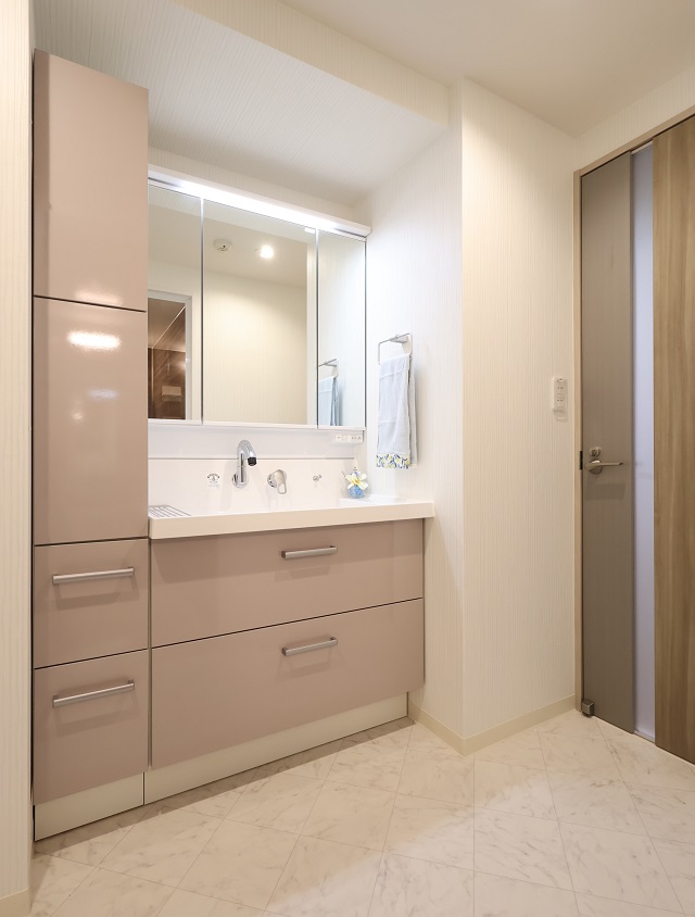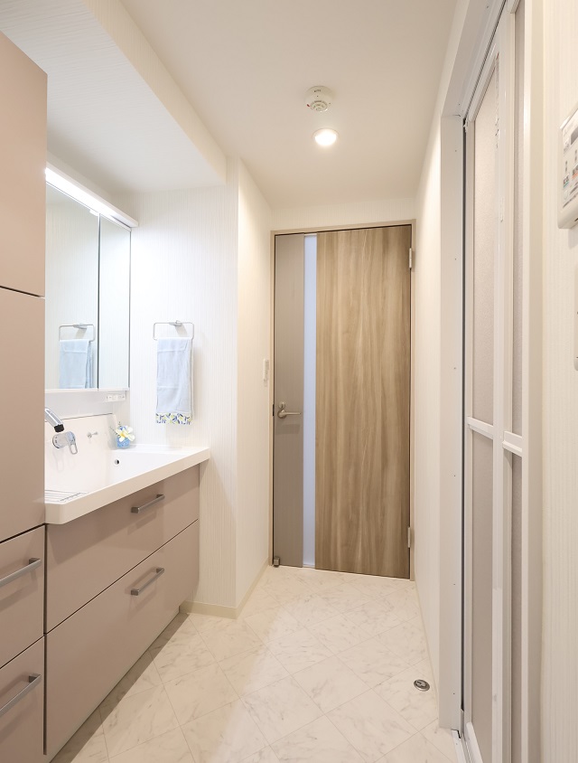 マンションの水まわり設備、給排水管の配管設備、フローリングや建具などの新建材、クロスなどの内装材のすべてを新しくするデザインリフォーム(フルリノベーション)です。
