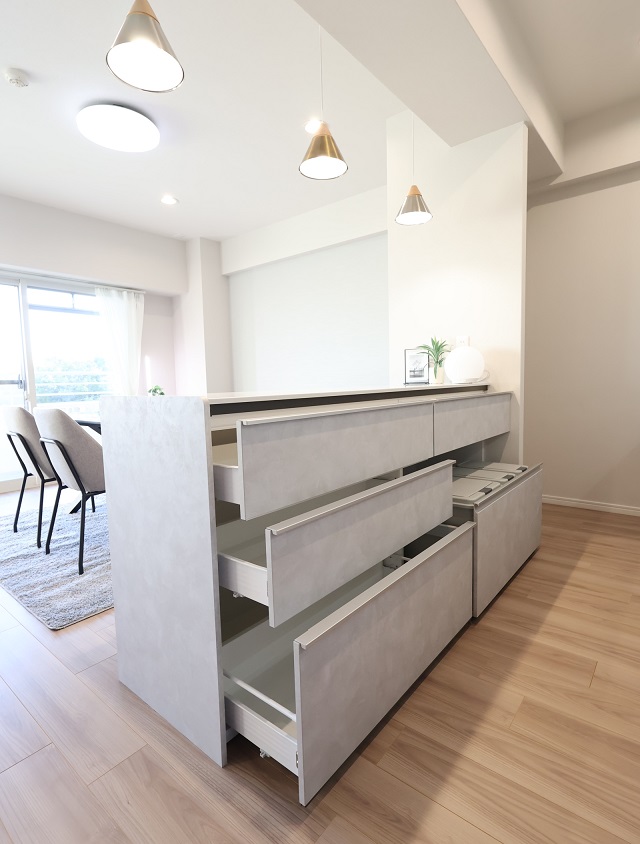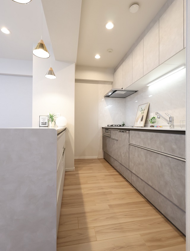 キッチンと洋室の間仕切り壁部分で、建具と壁を設ける事で、2部屋に分ける事ができます。3LDK・2LDKどちらでも対応できます。